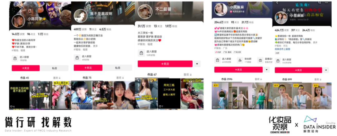 基于此,人仁和匠心的带货达人主要分为两种类型:爱分享护肤经验的年轻男性和热爱购物的宝妈群体。