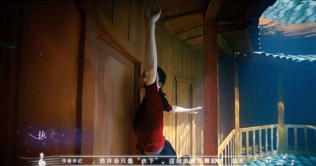 这个只有2分钟的舞蹈,却创造了许多名场面,女主角登阶拨珠帘,雕亭顶后翻一跃下,唯美的场景,让郭吉勇声名大噪。