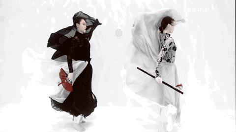 在白色背景的映衬下,一白一黑,一萧一扇,起跃翻转间的太极意象,堪称国风盛宴。