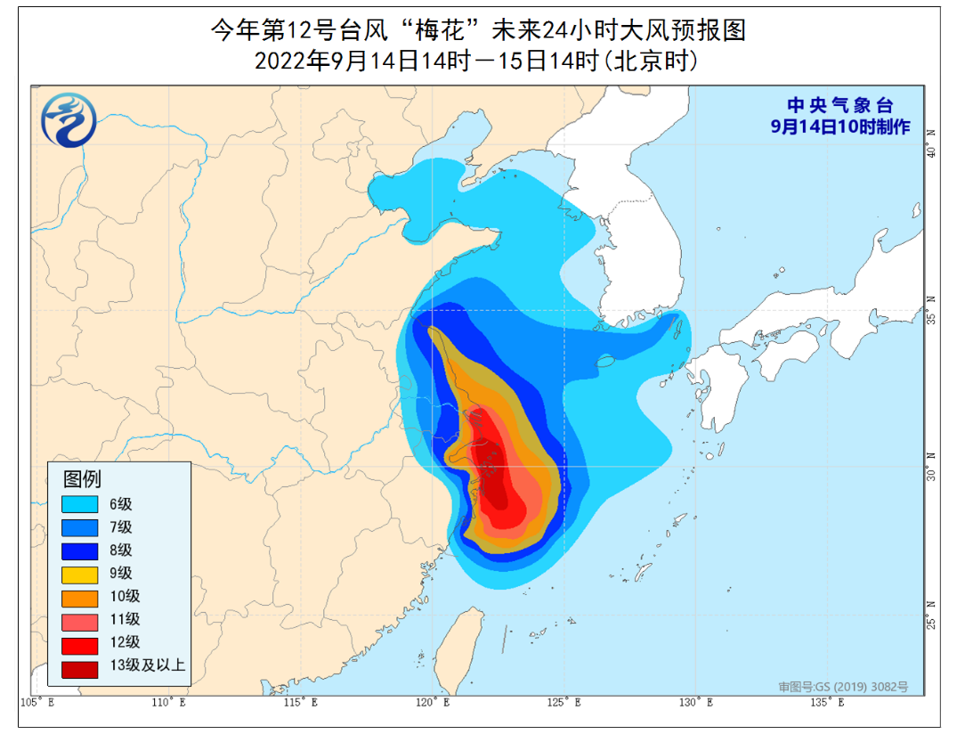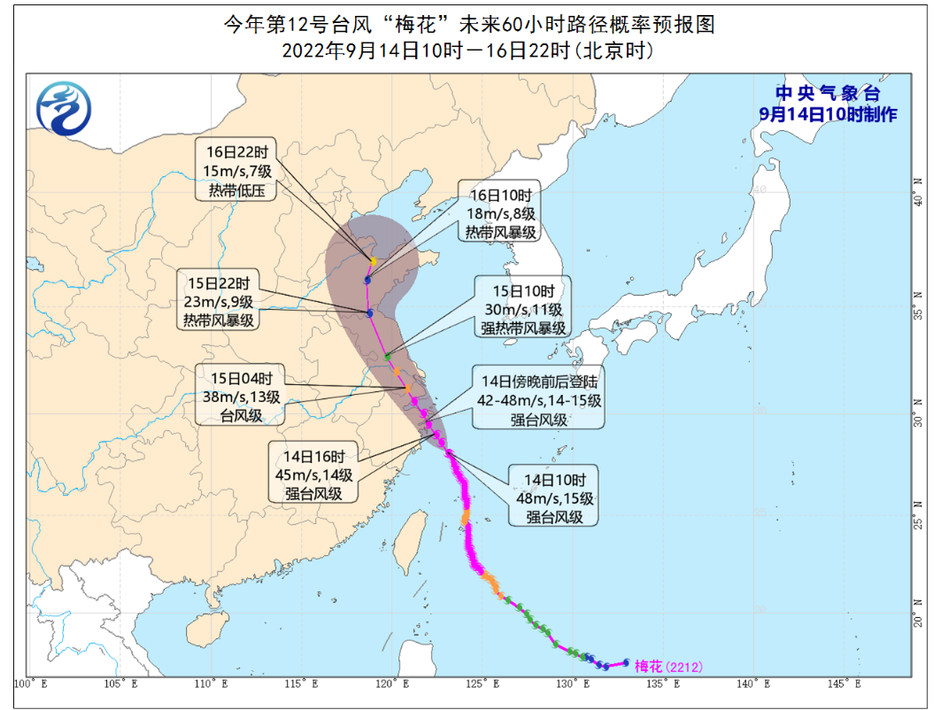 2022年9月14日10时,中央气象台发布2022年首个台风红色预警。