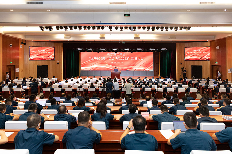 9月14日上午10时,山东重工集团召开“大干100天 链合决胜2022”动员大会。会上,山东重工集团党委书记、董事长谭旭光从决胜战略、决胜目标、决胜战术、决胜指挥等四个方面进行了全面部署。会议主会场设在中国重汽,同步设立42个分会场,线上线下3000余领导干部参会。