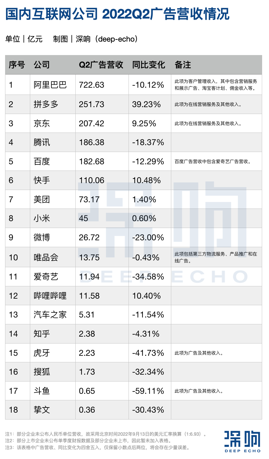 换句话说,从今年二季度开始,互联网广告收入的前三名已被三大电商平台包揽。