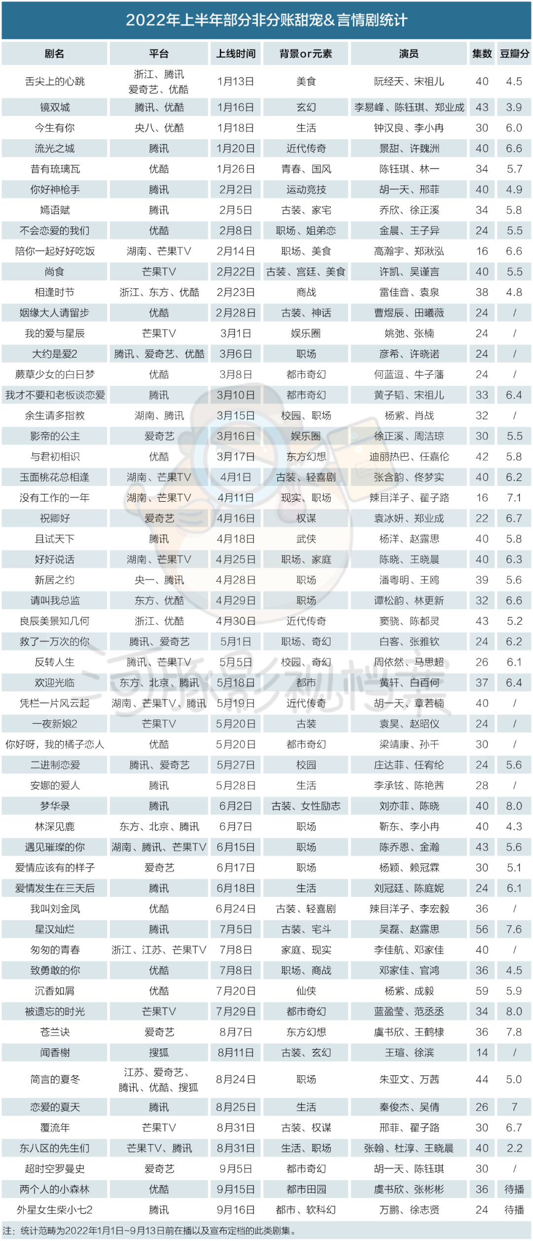 根据河豚影视档案的粗略统计,甜宠剧2022年上半年的播出量同比减少了一半。无独有偶,半个多月前爱奇艺透露,平台内的自制、定制与版权内容将退出甜宠赛道,此赛道内容将交托给分账剧。此举可谓是自去年年末,行业最为明确的的一次“降本增效”。