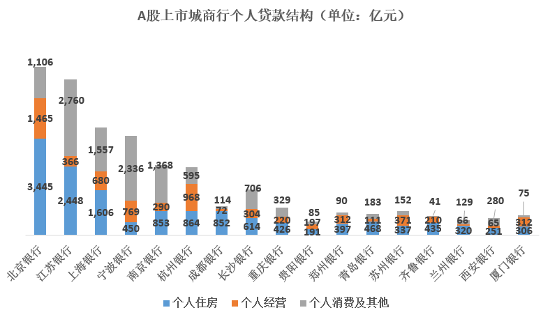 消金界认为,在“房住不炒”这个大的方针政策下,一家城商行要想从众多竞争对手中脱颖而出,就必须摆脱对于住房贷款的过分依赖,做大做强经营贷款、消费贷款,才有可能走出一条特色增长道路。如同宁波银行、江苏银行,就将重心放在了个人消费贷款业务上,个人资产规模也是随着该业务的发力而不断走高。