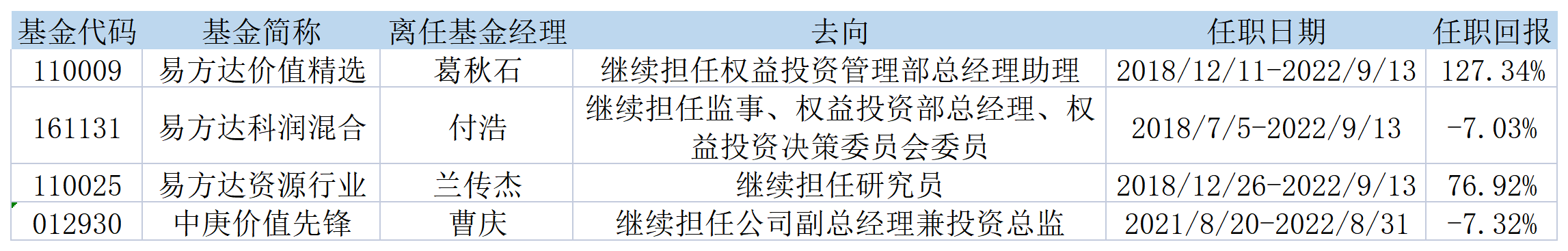 具体来看,葛秋石自2018年12月11日至今年9月13日担任基金经理,任职回报率为127.34%。离任后,葛秋石继续担任权益投资管理部总经理助理,接任者为包正钰,2017年加入易方达基金,担任研究员,这是他管理的第一只基金。
