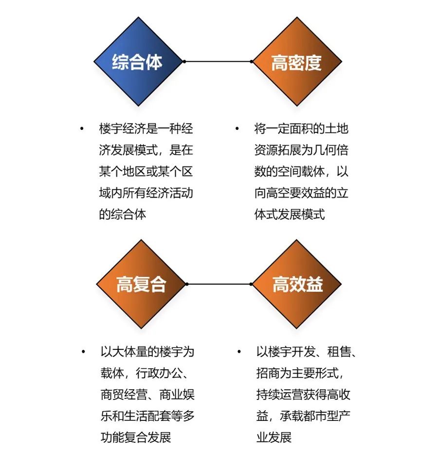 楼宇经济是城市经济发展中涌现的一种新型经济形态,以商务楼、功能性板块和区域性设施为主要载体,以引进各种企业、带动区域经济发展为目的,以体现集约型、高密度为特点的一种经济形态。楼宇经济重要的不是楼宇,重要的是经济,它要承载的城市功能首要的是“发展都市型产业”。楼宇经济主要具有综合体、高密度、高复合、高效益四个特点。