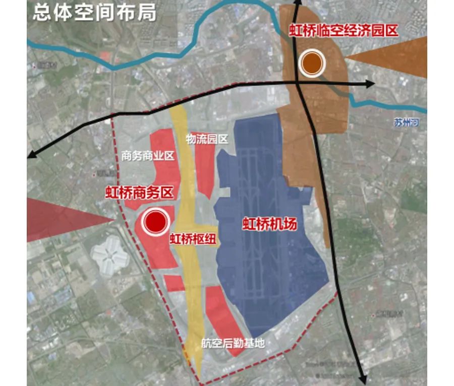 上海虹桥商务区以虹桥枢纽为依托,规划范围为86平方公里,以虹桥枢纽区域为主功能区,打造长三角的综合交通枢纽和区域商务中心。机场西翼中心规划发展枢纽核心商务区、商务型办公中心,以城市商务贸易功能为主;机场东翼中心规划发展临空经济园区、总部办公中心,服务于产业功能为核心。