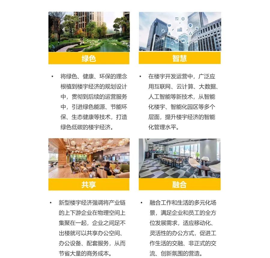 3、发展趋势:楼宇经济向着“绿色、智慧、共享、融合”的方向演进