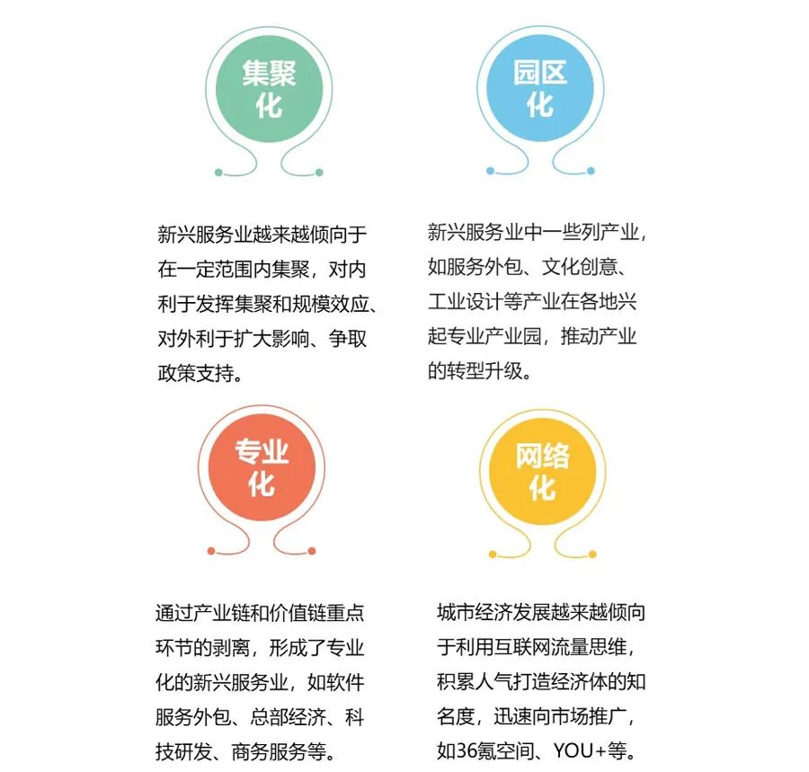服务经济:在互联网+、数字经济和智能技术等信息技术应用的驱动下,传统的产业链分解、跨界融合和创新,催生了大量的供应链服务、专业服务外包、制造业服务化等新兴业态。