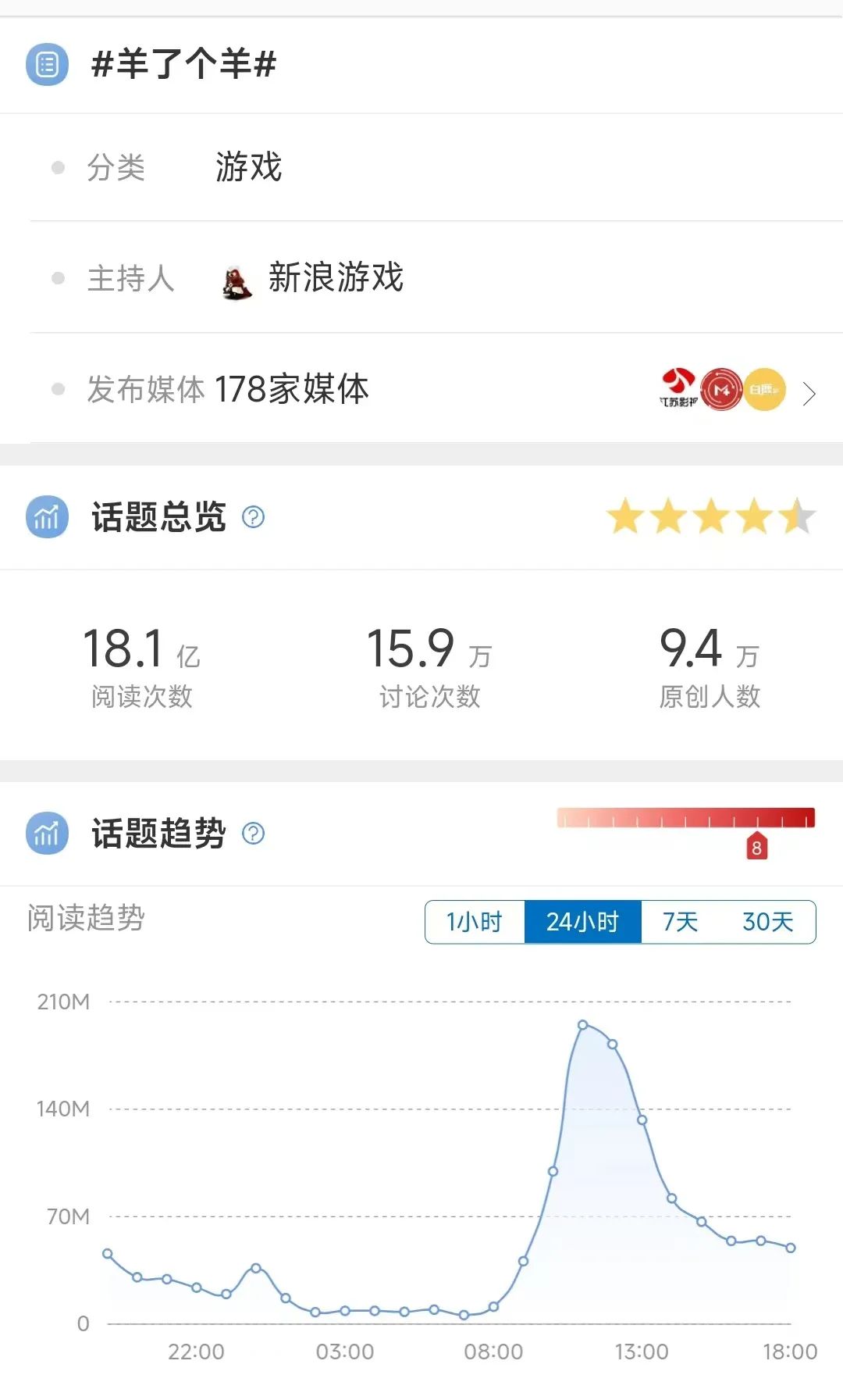 答案是:新浪微博自己。#羊了个羊#话题热门微博