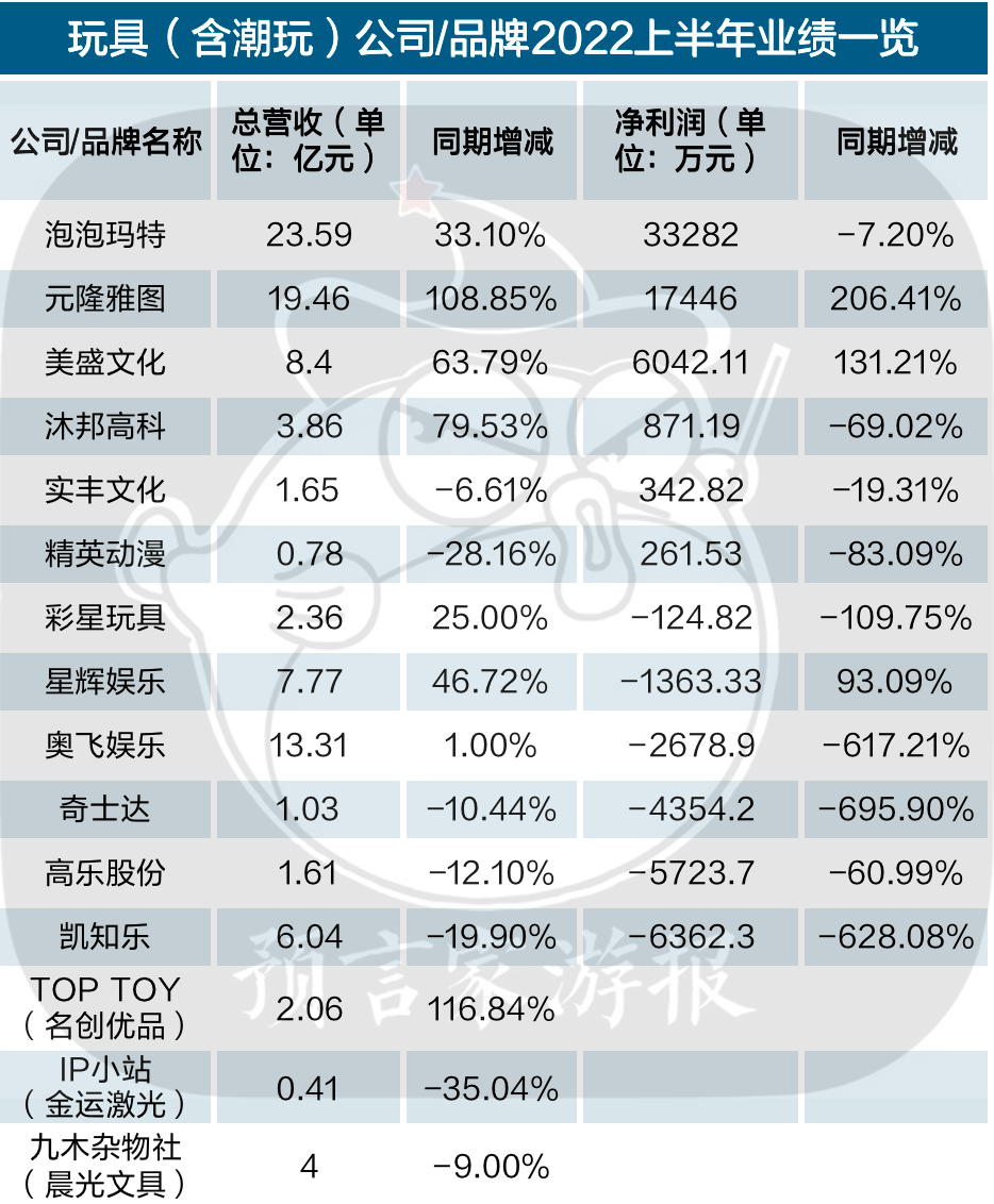 2022年上半年亏损的公司有6家,占到了总玩具公司数量的一半,中国内陆重点城市线下门店客流量减少或关停,海外收益额受限导致的。