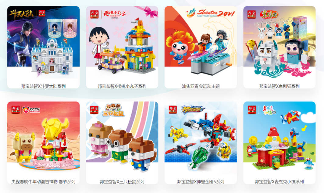 该公司的益智玩具以塑料积木玩具为主,主要包括科普系列、编程机器人系列、城市系列、婴幼儿系列及IP授权系列,总共20多个系列200多款热销产品。