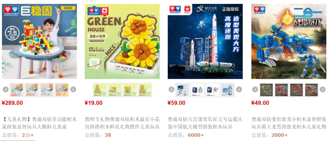 品类玩具以积木类产品为主,公司旗下“维思积木”品牌主打中颗粒和小颗粒产品,结合IP、教育、科技等不同属性,推出了积木遥控车系列、军事积木系列、航空航天拼装系列、超级飞侠及巴啦啦小魔仙系列场景等多款产品。