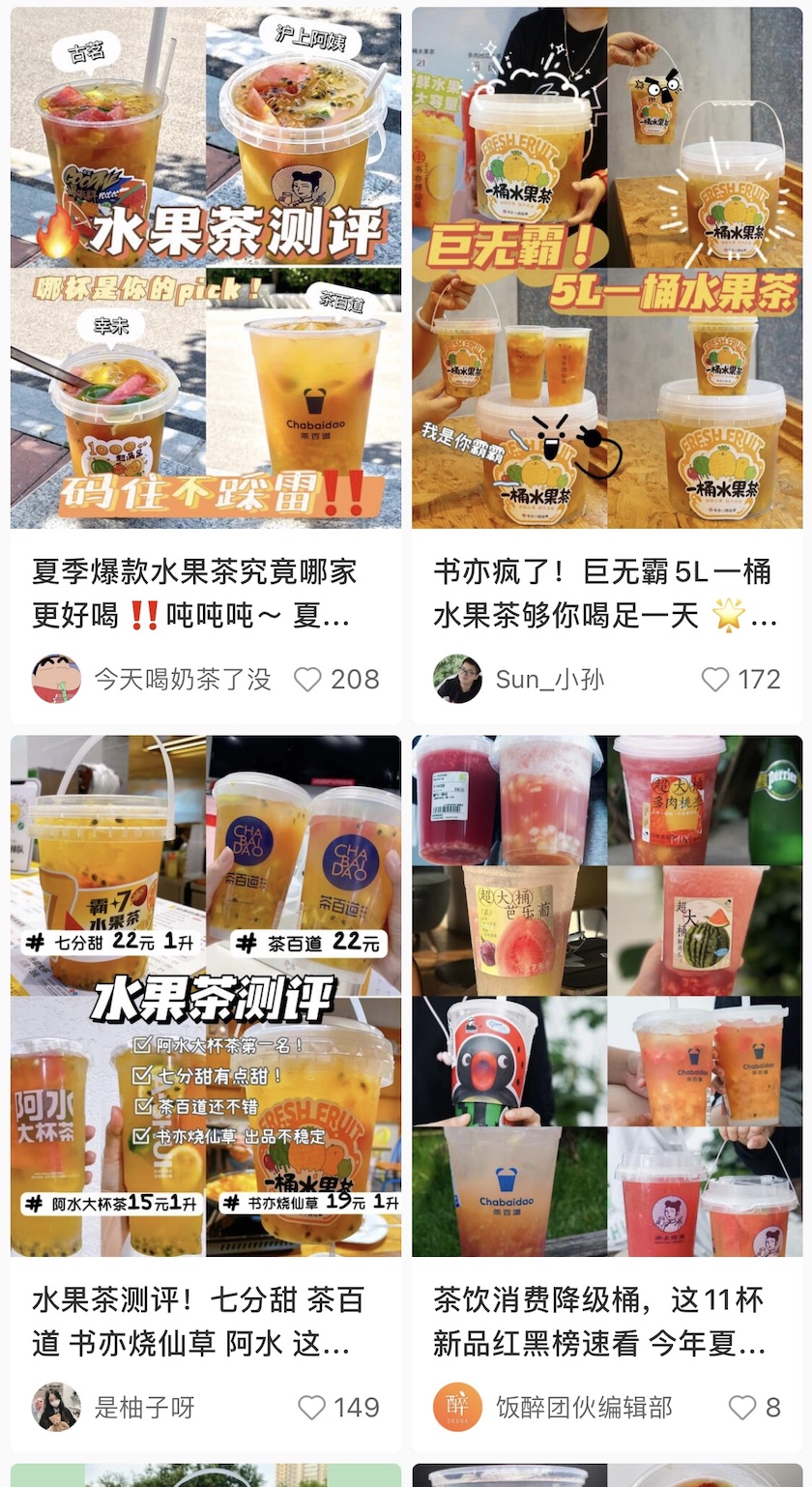 从喜茶到古茗、茶百道、沪上阿姨、书亦烧仙草,今年至少有23个品牌推出了超大容量的桶装产品,每个月都有超20款上新。并且尝到甜头的品牌们也格外重视大号包装,喜茶眼下在推新品饮品时,除了常规版本还会同步推出一个1L装版本,比如此前的超大桶芭乐葡等。