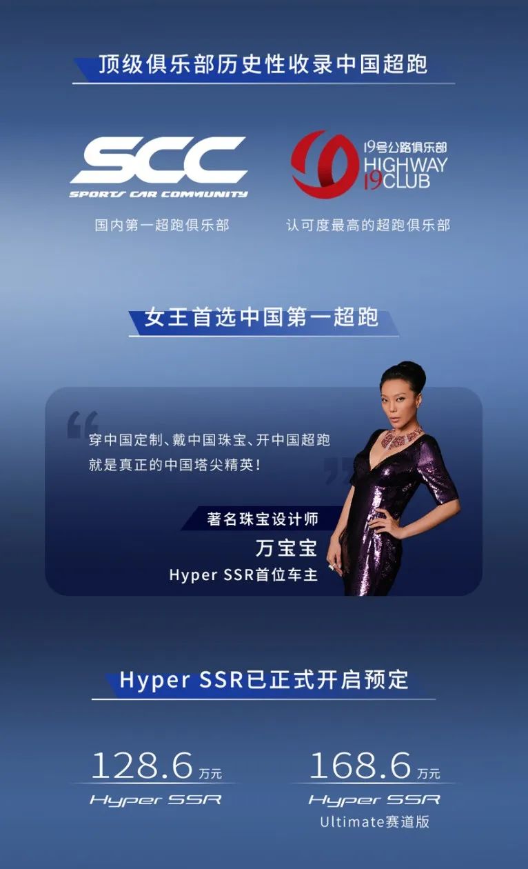 作为首任车主代表,以珠宝设计师身份上台的万宝宝贴着Hyper SSR的蝶翼门表示:“穿中国服装、戴中国珠宝、开中国超跑,才是真正的中国塔尖精英。”