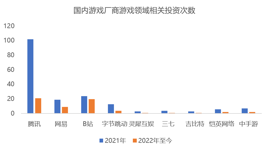 2022年,游戏厂商对外投资呈现断崖式下降,“扛把子选手”腾讯投资数量缩水近8成。