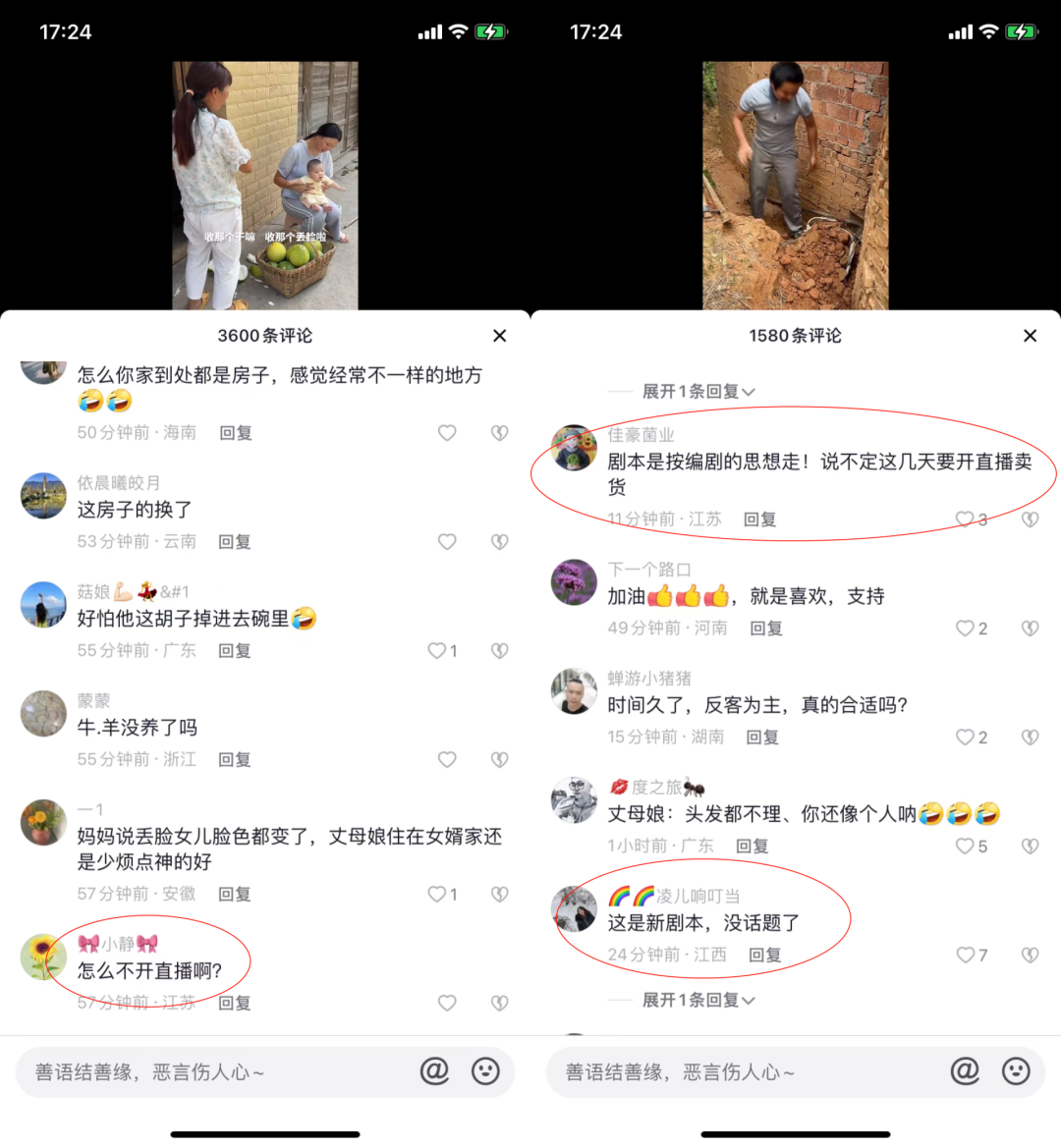 真实感和淳朴感是广大看客对三农内容的最大诉求。用户既希望他们的内容和人设是真实而不做作的,又希望账号能够保持朴实和纯粹。一旦这两个要素被打破时,达人很容易受到反噬。