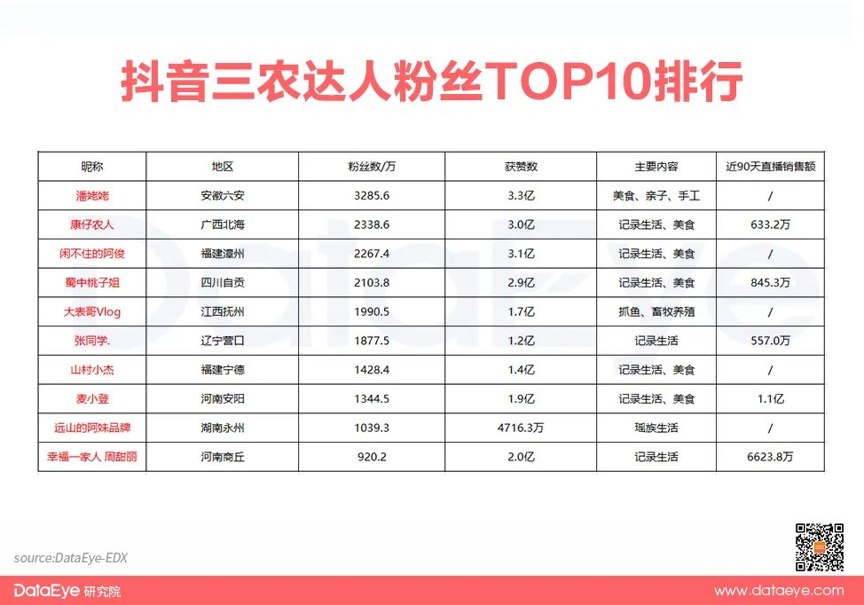 今次,DataEye研究院电商组将从内容生产、运营策略、变现渠道等方面,系统梳理了抖音平台新农人的TOP10,以了解三农赛道未来发展趋势及机会点。