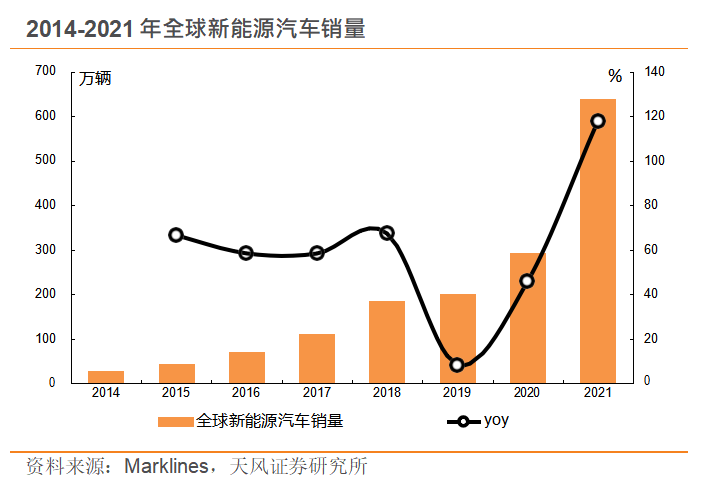全球电动汽车市场在2014年下半年爆发,短短七年间,全球新能源汽车销量从约30万辆快速增长为约600万辆。中国因完善的基础设施建设,销量从4万辆增长至约300万辆,可以说包揽了新能源汽车的“半壁江山”。