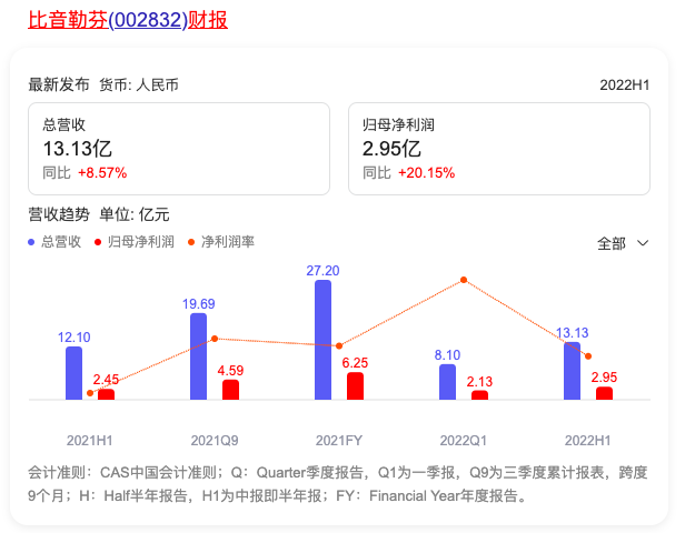 另一个则是同为服饰上市公司的比音勒芬。创立于2003年的比音勒芬业绩持续增长,从营业收入来看,2017~2021 年营业收入复合增长率达到 26.7%,远超行业平均水平。即使是2022年第一季度受疫情影响,仍然实现同比增长 30.2%。而其净利润增长更是超过了收入增速。
