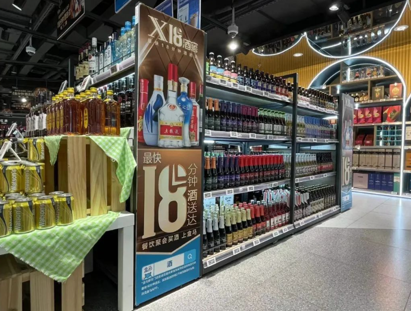 另一边,一些互联网大厂旗下的新零售超市也在“酒生意”上花心思。2021年9月,阿里旗下的盒马生鲜推出酒业项目“X18酒窖”,即盒马酒水能在18分钟内配送完成,这比酒类新零售头号玩家壹玖壹玖还要快一分钟。