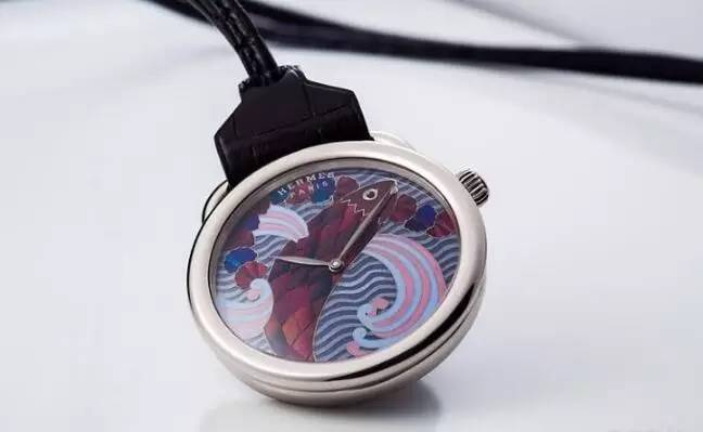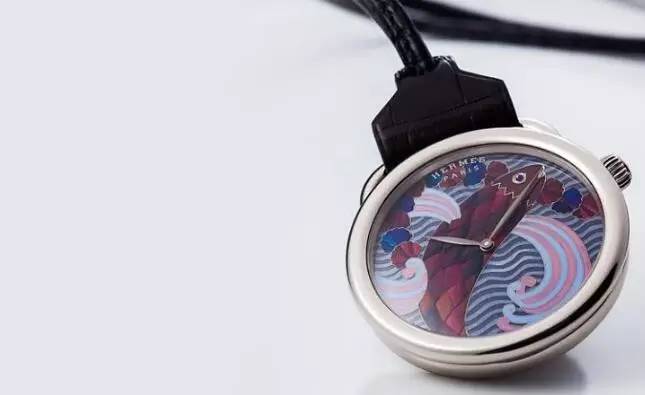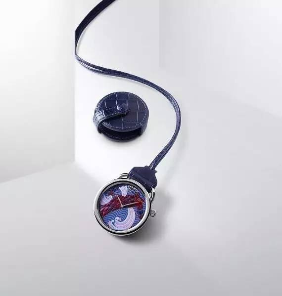 传统的怀表大致上都会搭配链带,方便将怀表当作项链配戴,但后来链带可能会导致怀表有刮痕的风险,因此有些藏家会特别将链带改为皮带减少表耳与链带之间的摩擦以及保护怀表的最好方法。爱马仕作为皮革工艺的佼佼者,Arceau Pocket Ailes et Ecailles怀表贴心采用鳄鱼皮吊绳和保护套作为怀表的保护层,细心顾虑实用性。经过特殊处理过的蓝色鳄鱼皮革在经过爱马仕独门的缝线、抛磨等工序处理后,实践罕见工艺和皮革制作工艺的和谐共存。
