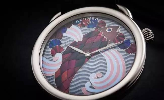 微绘很容易理解,就是在非常微小的物体上进行绘画。本田怀表的微绘字面在工艺的确很赞,使用了甲虫鞘翅细工镶嵌技术加上「大明火」技法烧制而成的微绘珐琅将每一片鱼鳞渐层的色泽必须经过工匠细心打磨、上色、烧制,小小心翼翼切割成精准无比的菱形小细片,逐一用甲虫鞘翅技术镶嵌在特定位置上,方能让鱼鳞宛如3D视觉效果并呈现甲虫翅膀上的自然光泽。面盘中越是细微的细节越是考验工匠的技法,像是波浪和鱼鳍图案必须先经过金工刻出纹路,然后透过工匠用纤细画笔将珐琅内填上色并反覆经过多次极高温度烧制,细致的蓝红色层次才会成形,最坑爹的是,这个每一个过程都有可能出现意外,比如温度的控制不当,就会让之前所有的成绩=0