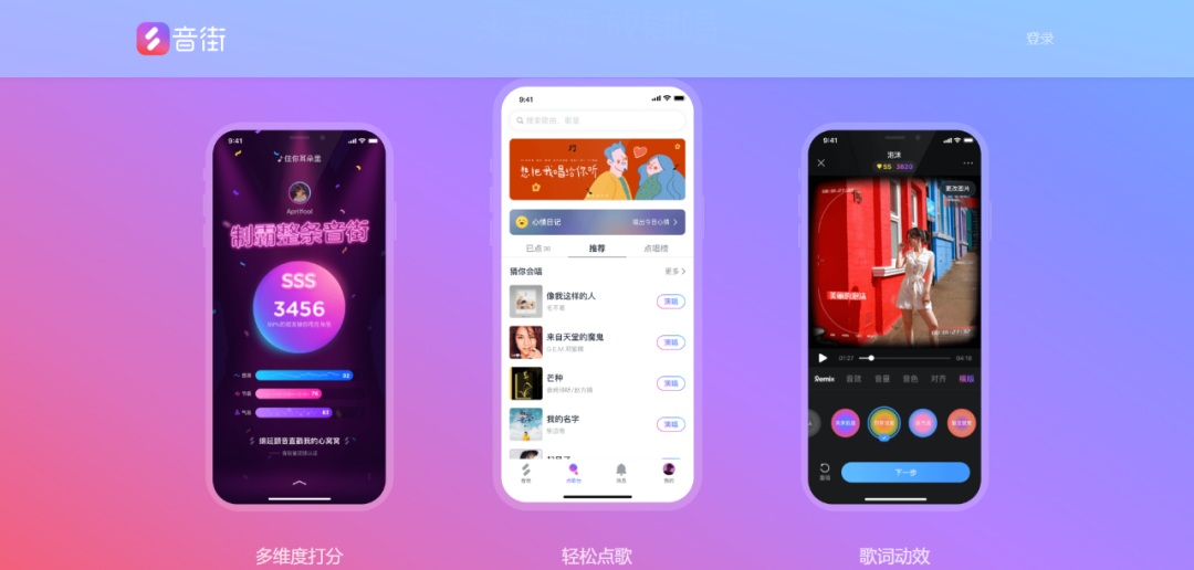 2020年6月16日,网易云发布了专为年轻人打造的独立K歌APP音街。这一特点也在产品设计上得以体现:音街主打轻松点唱、优质推荐、歌词动效、多维度打分、片段短唱等。和其他K歌APP不同的是,音街打开后的默认界面并非点唱,而是推荐其他用户的演唱歌曲,致力于结识音乐好友,在某种意义上它更强调内容和社区,而非K歌的工具属性。