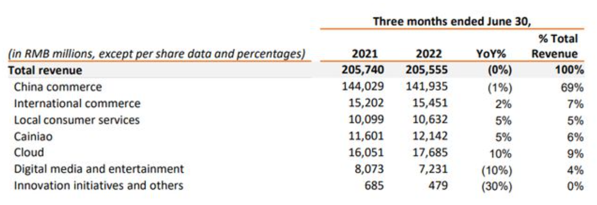 虽然阿里在财报中提及“中国商业分部经调整EBITA下降,部分被饿了么的单位经济效益改善,致使本地生活服务分部的经调整EBITA亏损收窄所抵消”。但本地生活服务仍不是阿里营收的重点。