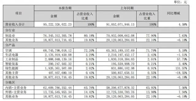 (格力2022上半年分产品营收情况 图源:格力年报)