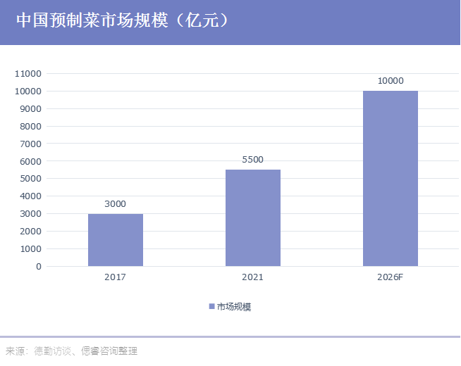 2021年,中国预制菜市场规模为3459亿元,同比增长19.8%,预计未来中国预制菜市场保持较高的增长速度,至2026年,预制菜市场规模将超一万亿。