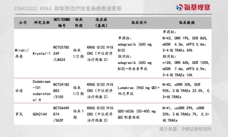 在此次ESMO大会上,两家公司均公布了KRAS G12C抑制剂联合EGFR单抗治疗结直肠癌的早期数据。