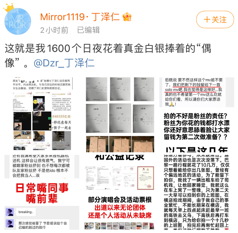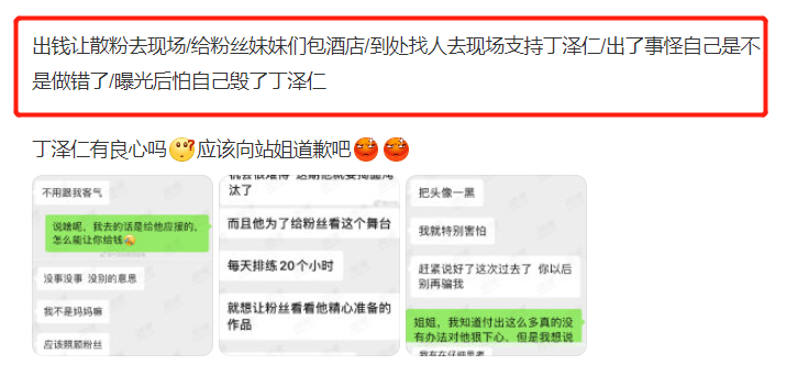 国内的爱豆特别是糊豆们,则往往打感情牌,靠卖惨吊住站姐,比如丁泽仁和“他唯一的姐”。A子就听说过,有站姐与爱豆交换联系方式后,小糊豆一会说姐姐我想去学跳舞,但公司不同意;一会说在内娱做爱豆死路一条,想去上培训班提升演技。但终极目的就是一个——要钱。