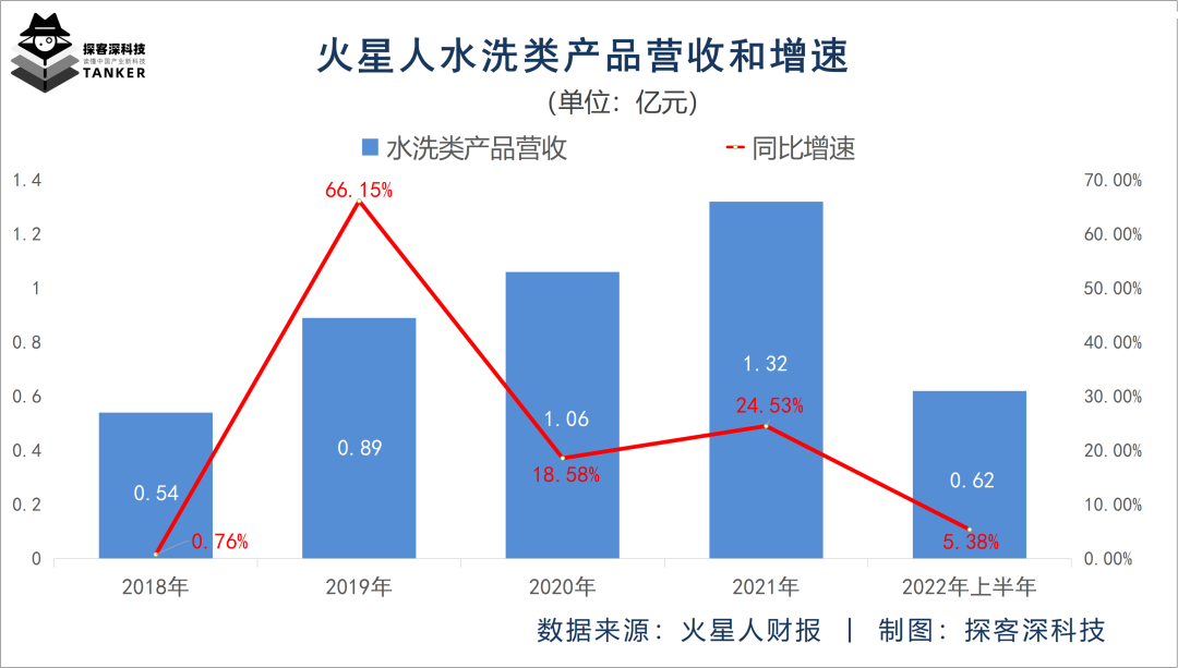 而且,此前4个年度火星人的水洗类产品营收增速均为正值,依次为0.76%、66.15%、18.58%和24.53%,平均增速达27.51%。