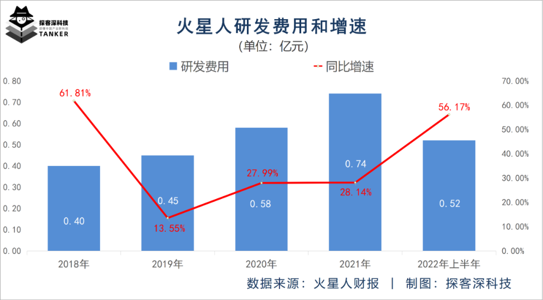 而此前4个年度火星人的研发费用增速均为正值,依次为61.81%、13.55%、27.99%和28.14%,平均增速达32.87%。