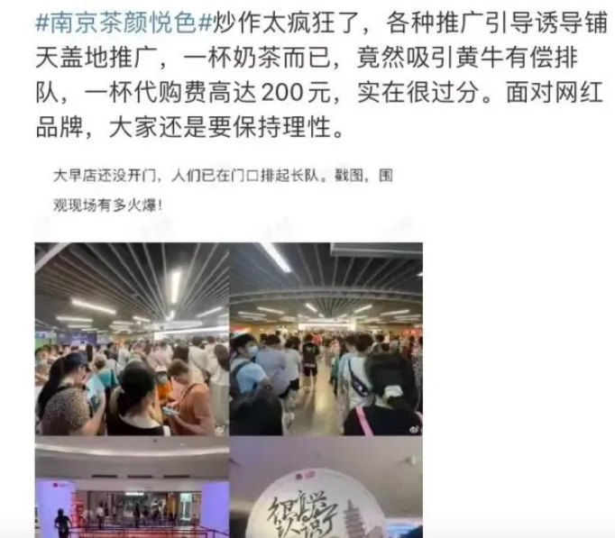 值得注意的是,今年8月份南京首家茶颜悦色开业之时火爆异常,甚至出现了凌晨四点排队,黄牛炒作的现象,茶颜悦色也因此冲上了热搜。