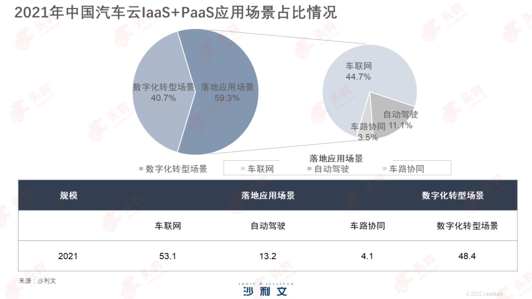 上述报告显示,2021年,“落地应用场景”需求量首次超过“数字化转型”需求,大概在70.4亿元,在整个汽车云IaaS+PaaS中占比达到59.3%。也就是说,智能化驱动车企上云需求迎来拐点,这意味着一个围绕新技术展开的市场正在开启。