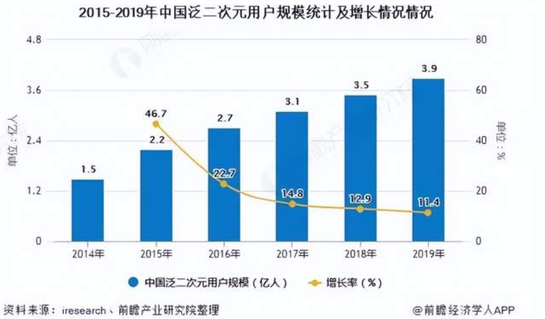 据前瞻产业研究院数据显示,2014-2019年期间我国泛二次元用户规模逐年增长,但增速逐年放缓。尤其是2017年之后,中国泛二次元用户规模增速明显放缓,行业天花板逐渐显现。