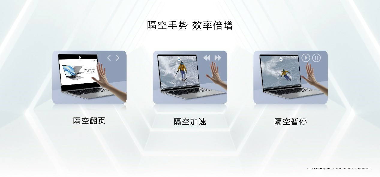 以最新发布的荣耀MagicBook V 14 2022为例,首次搭载智慧化交互功能,其配备的隔空手势操控功能不仅能够隔空手势操控笔记本浏览文件、观看视频,还可搭配人脸解锁轻松实现人走自动锁屏、人来靠近唤醒,保护隐私的同时让用户尽享便捷。
