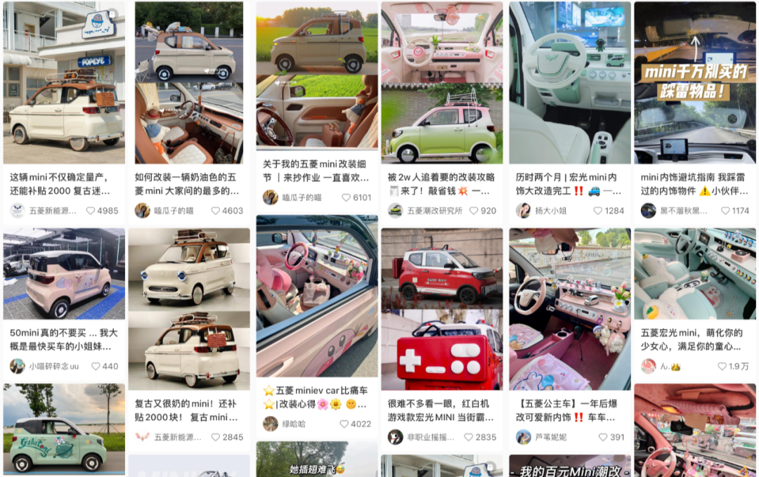 从小红书的分享中不难看出,这一系列几乎成为女性用户的心头好,过去属于mini cooper的“mini”关键词,如今已经并列了宏光MINI EV。