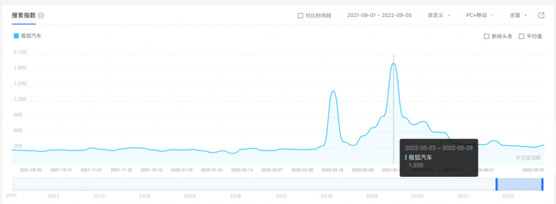 极狐官方表示,崔健的线上演唱会累计观看人数高达4603万人,点赞人数1.2亿,算上之后的罗大佑演唱会,极狐在短短一个月里收获了超过40亿的全网曝光量。百度搜索指数显示,极狐汽车的搜索量日均300,但在崔健演唱会后瞬间攀高至近2000,罗大佑演唱会也一度将极狐搜索量带上峰值。