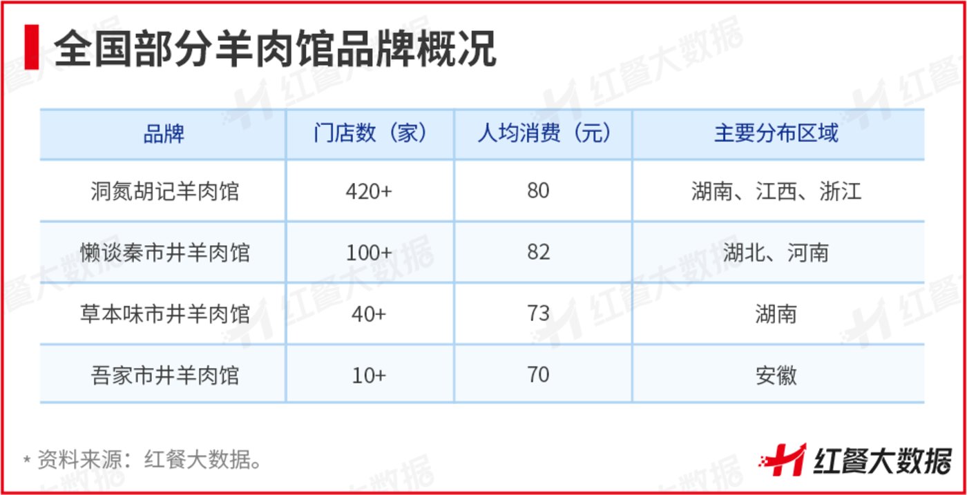 其次,目前大部分市井羊肉馆门店集中在湖南、湖北、安徽等区域,因为烫皮羊肉的吃法在南方更普遍,这也是品牌跨区发展的最大障碍。
