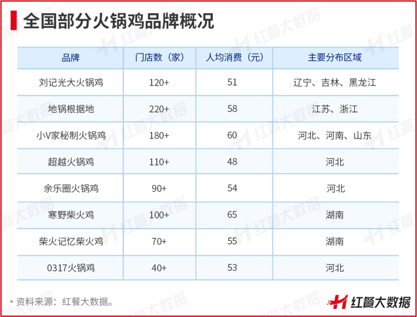 比如刘记光大盘踞在东三省,超越、余乐圈、0317火锅鸡主要以河北为根据地,小V家秘制火锅鸡门店主要分布在河南、河北、山东。