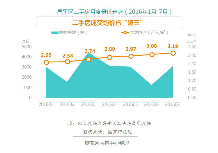 上半年(2016年1月-7月),二手房成交均价不断攀升,从6月始“破三”。7月环比6月,二手房成交均价涨幅达3.6﹪。