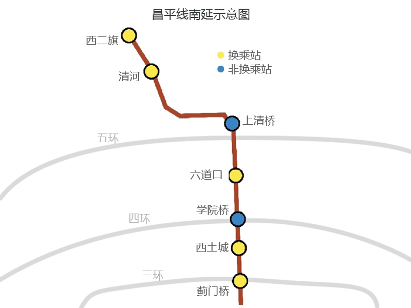 未来,昌平线将从西二旗站一路南延7站到达蓟门桥站,其间增加5座换乘车站,一改西二旗站拥堵站的“名号”。