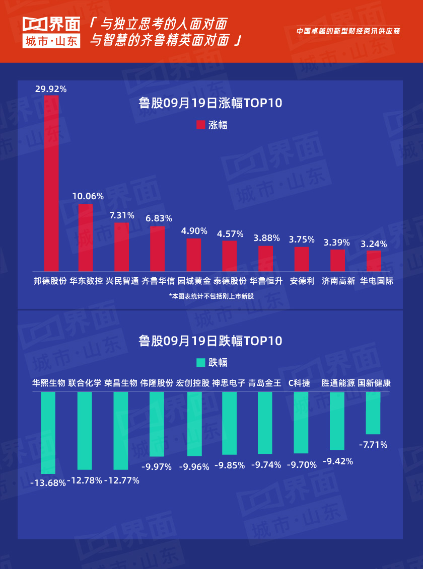 9月19日,山东74只个股上涨,204只个股下跌。