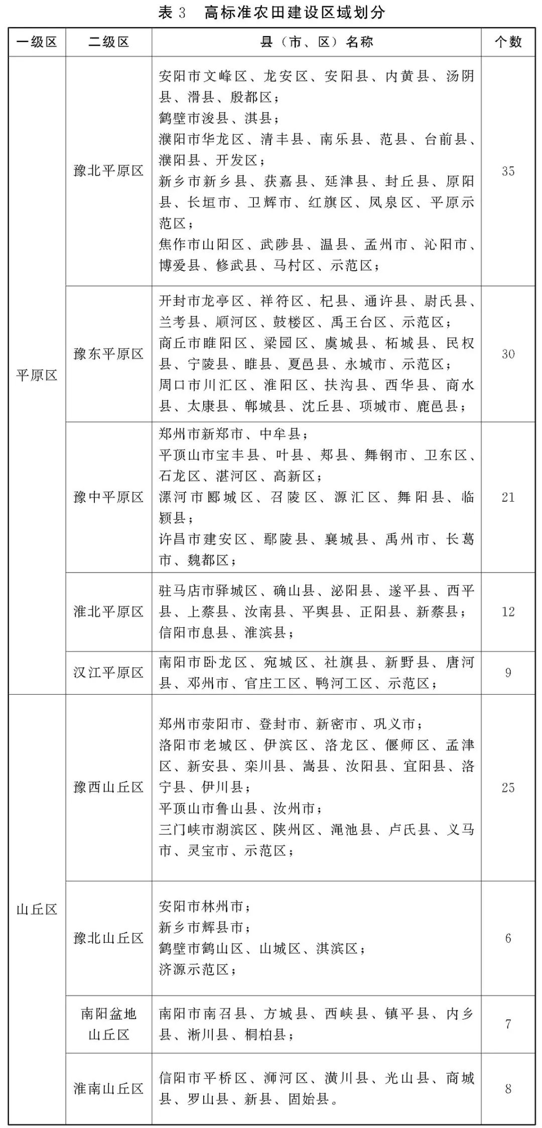 根据区域气候、地形地貌、水源、土地利用条件等因素,将全省高标准农田建设划分为平原区、山丘区2个类型大区(一级区)及9个区域片区(二级区)。