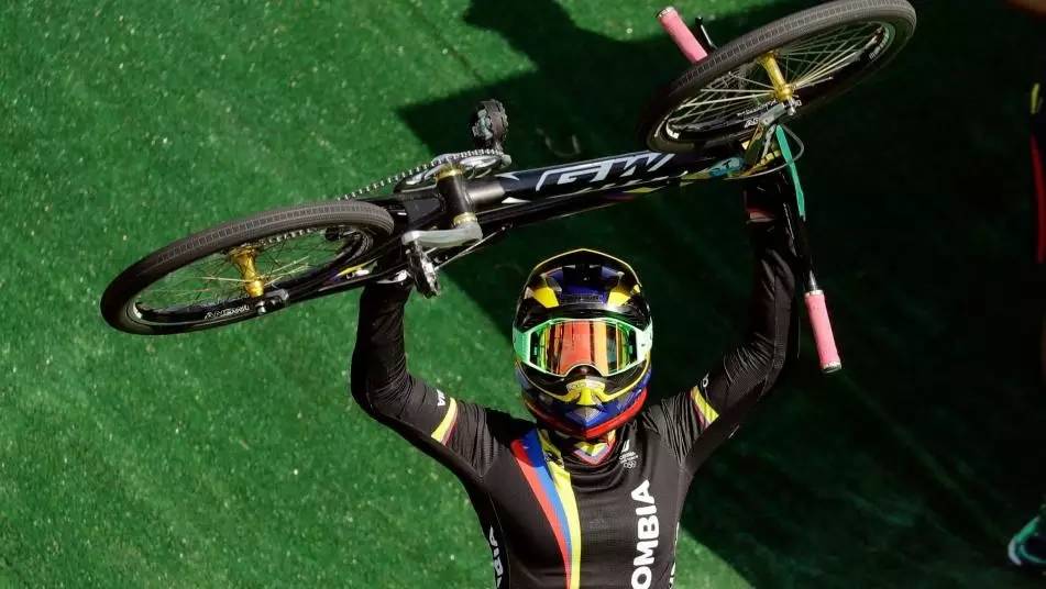 今天是BMX小轮车项目产生奖牌的第一天,也是唯一一天。男女子项目六面奖牌被四个品牌瓜分。包括赞助哥伦比亚队的Suarez(如下图)。
