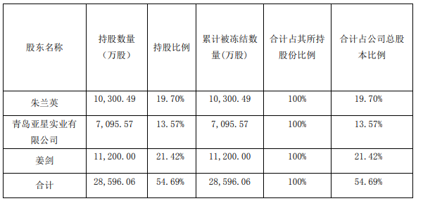 公告显示,姜剑、朱兰英、青岛亚星实业有限公司合计持有*ST大通54.69%的股份,均被司法冻结。由于尚未收到法院的相关文件,公司目前尚未得知具体案件情况。