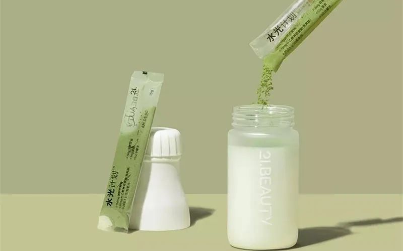 为了解决新鲜果汁原料成本高,生产时间长等痛点,21BEAUTY将主打的产品定为零添加清体果蔬纤维固体饮料。其产品成分由健康的水果蔬菜(比如羽衣甘蓝、芹菜、椰子)搭配其他健康成分像透明质酸钠、燕窝酸等构成。